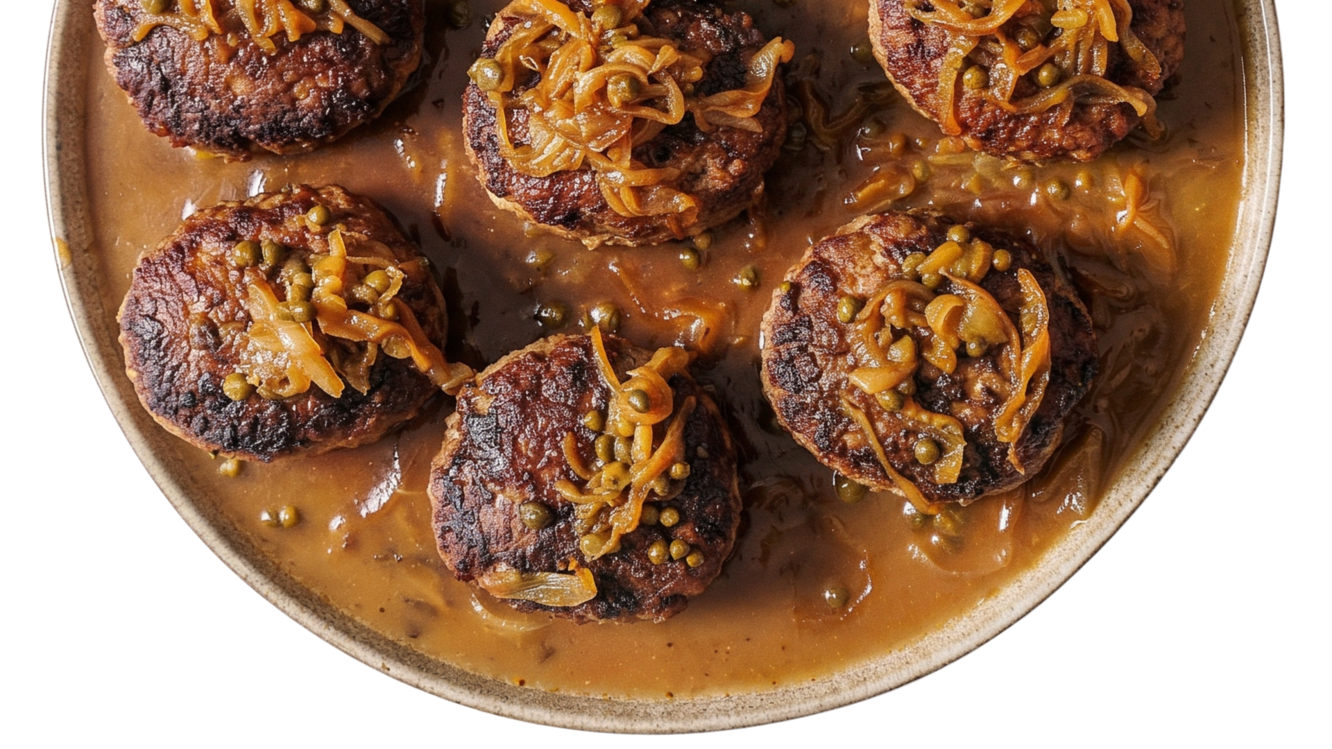 Pulpety z szynki wieprzowej od Bystrego w maślanym sosie pieprzowym z cebulą