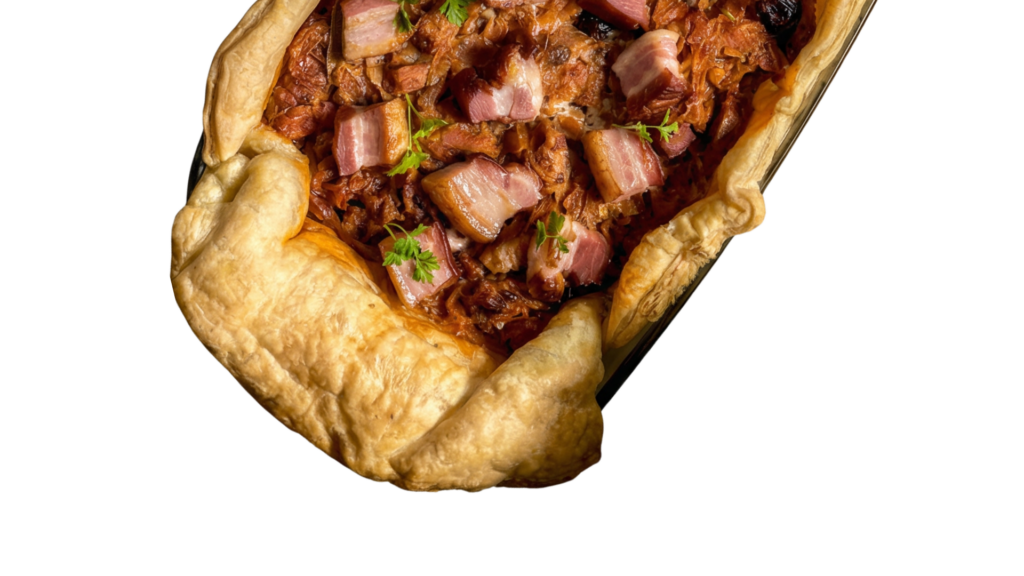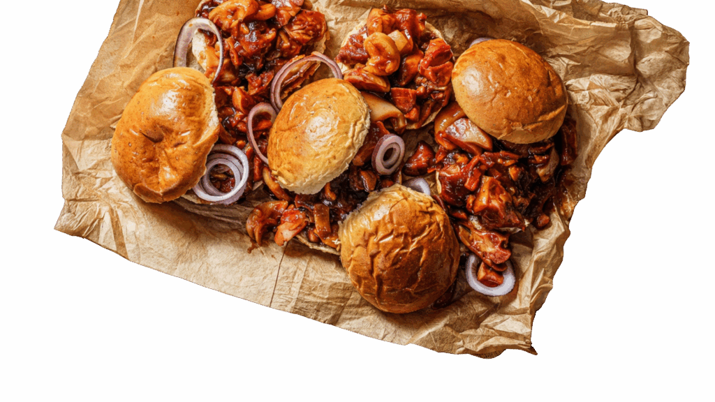 Bułeczki maślane z szarpaną golonką, BBQ i czerwoną cebulą