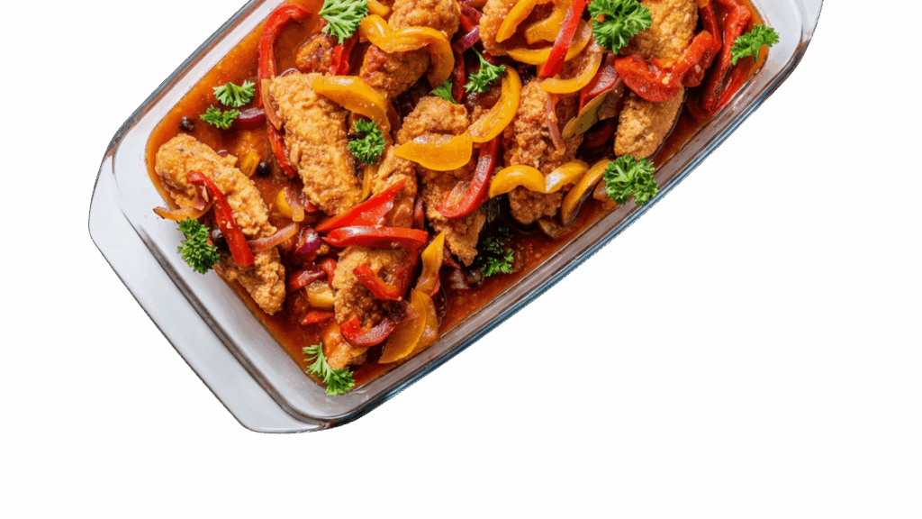Marynowane piersi z kurczaka w słodko-kwaśnej zalewie z papryką czerwoną i żółtą