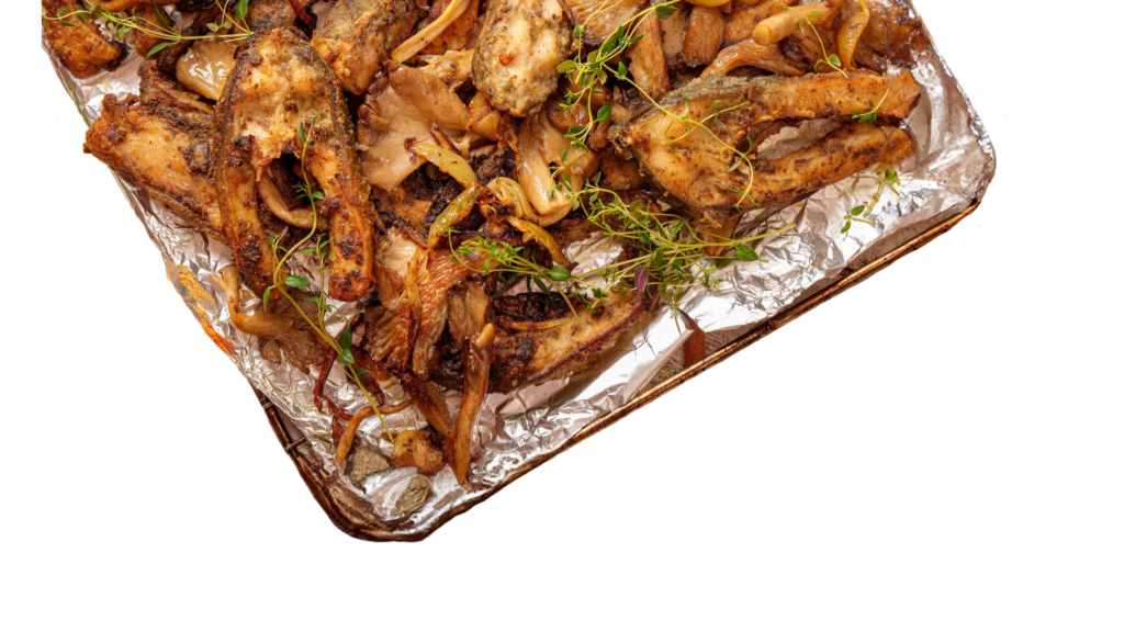 Smażony Karp z cebulką i boczniakami