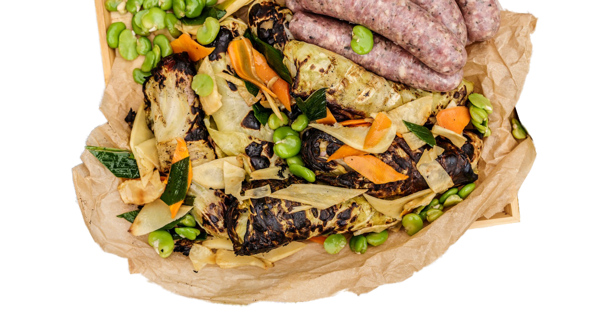 Gołąbki z młodej kapusty z białą kiełbasą i grillowanym bobem