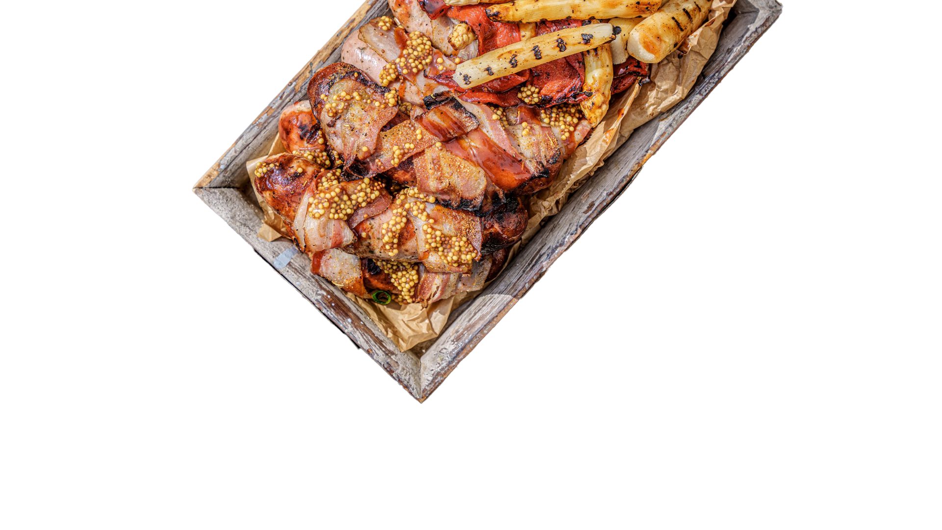 1. Na talerzu ułóż grillowaną polską surową kiełbasę od Bystrego, przykrytą zrumienionym boczkiem.