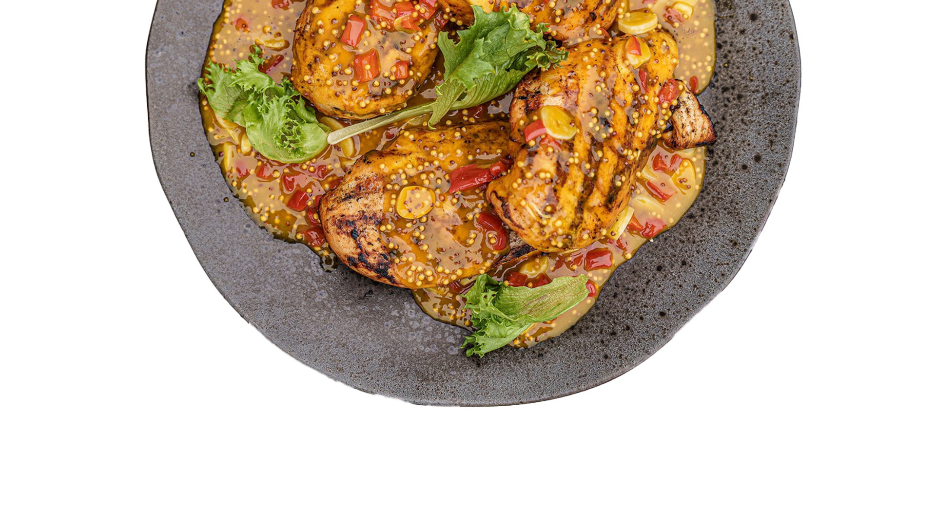 Grillowany kurczak w sosie mango z czerwoną papryką