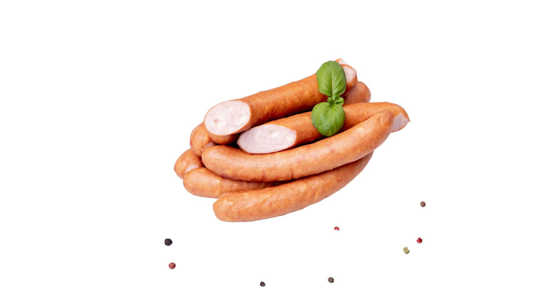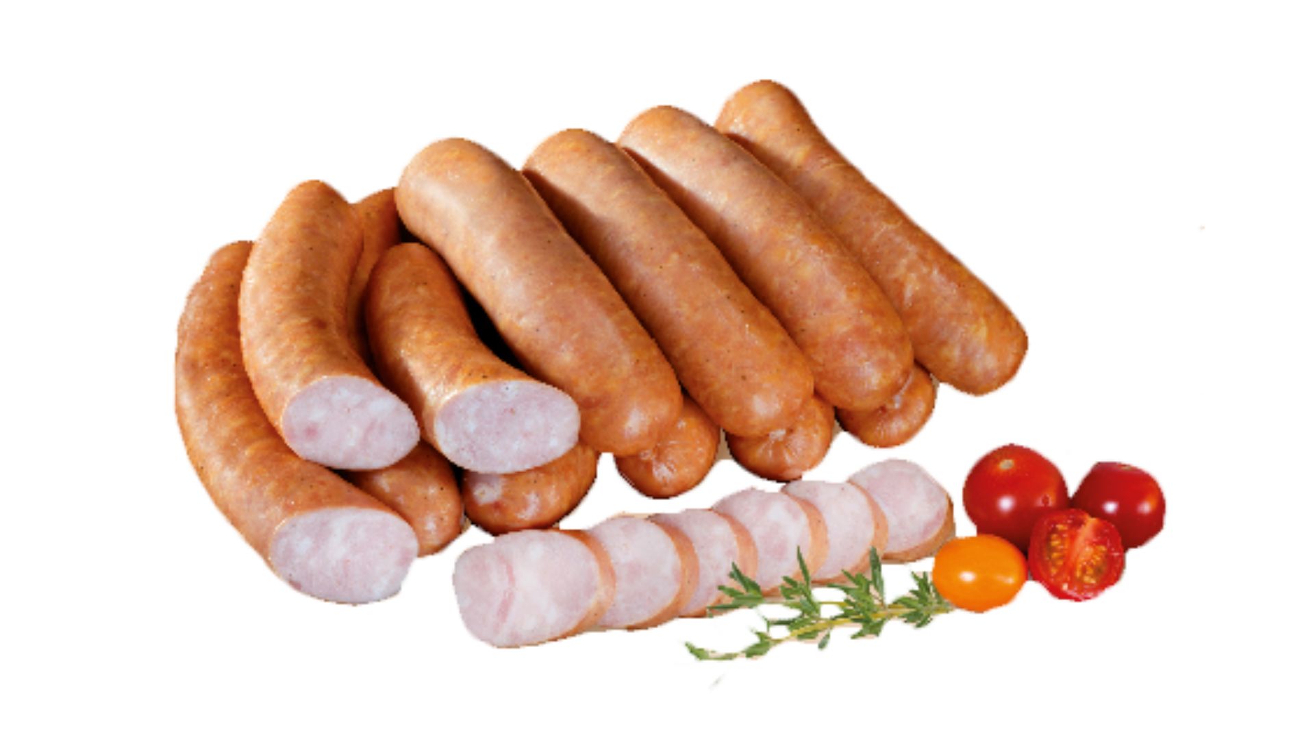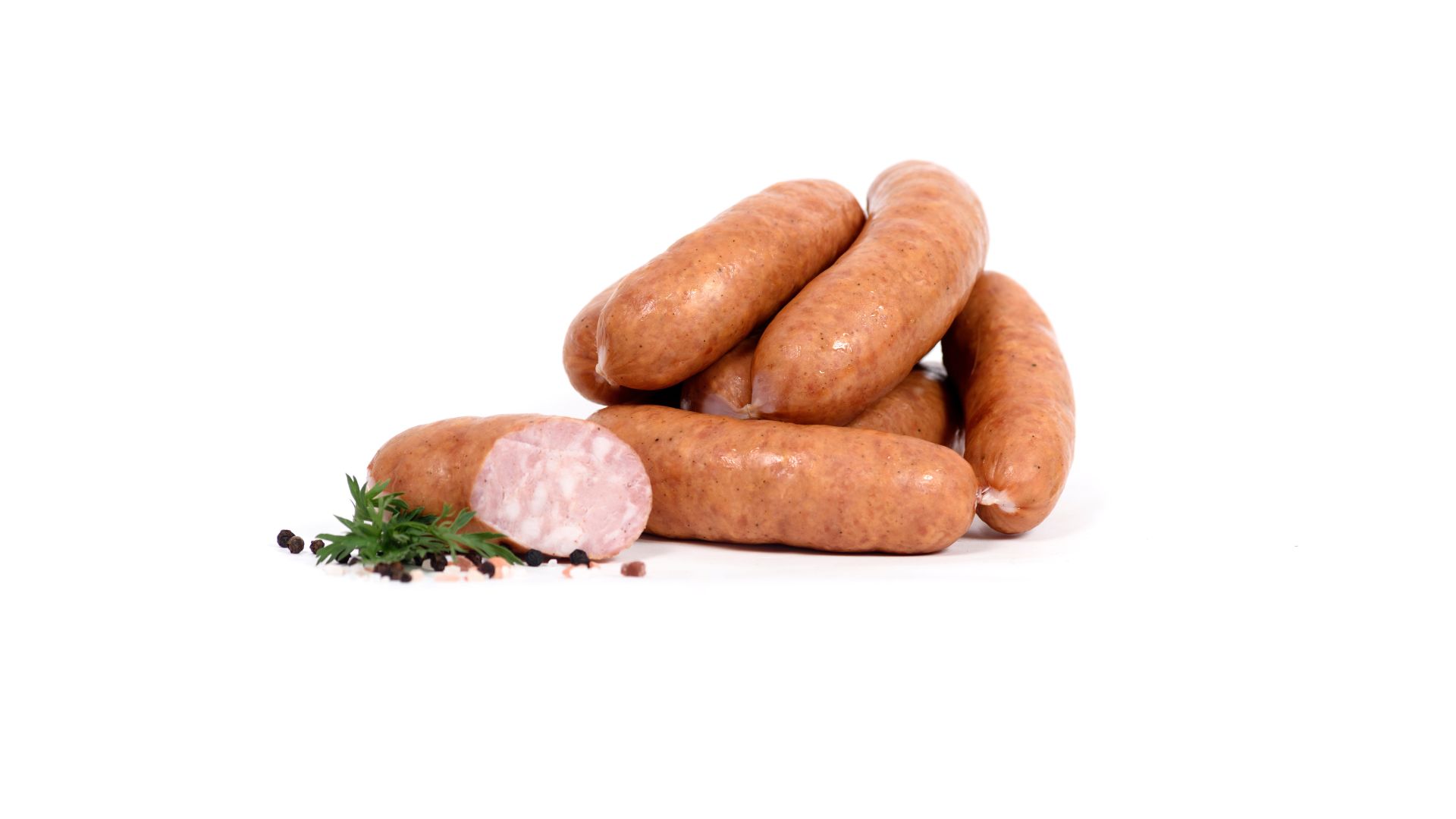 Kiełbaski homogenizowane, wieprzowo-wołowe, w jelitach naturalnych – baranich. Wysoka zawartość mięsa. Dobre na ciepło i na zimno. Produkt pakowany w technologii MAP.