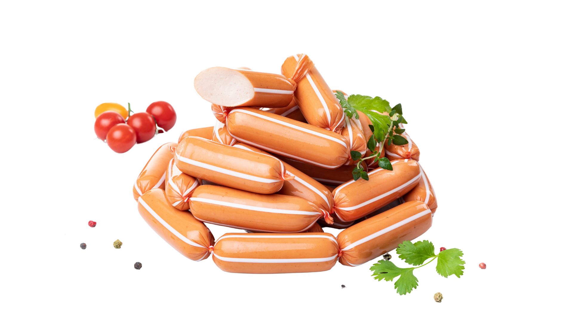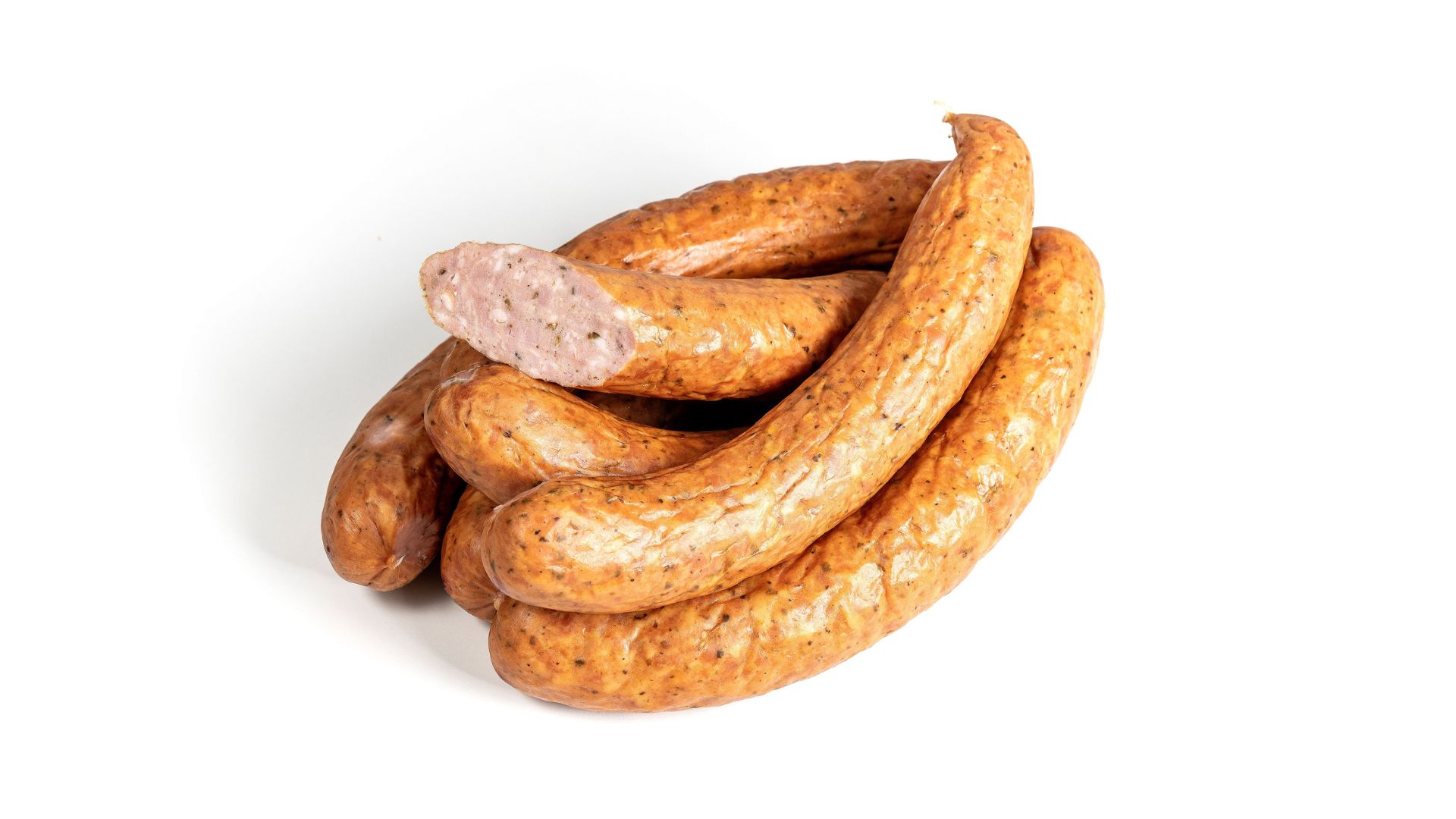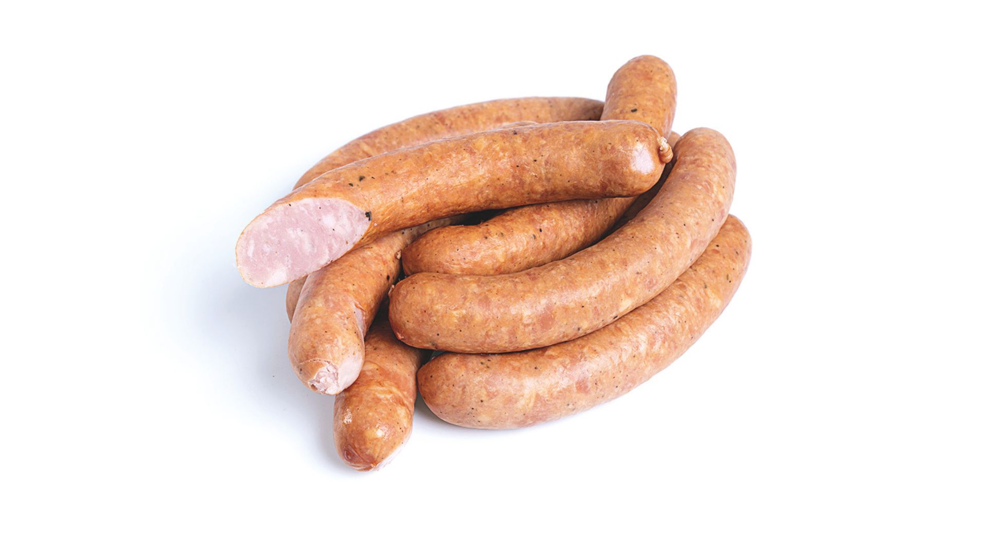 Kiełbaski homogenizowane, wieprzowo-wołowe, w jelitach naturalnych – baranich. Wysoka zawartość mięsa. Dobre na ciepło i na zimno. Produkt pakowany w technologii MAP.