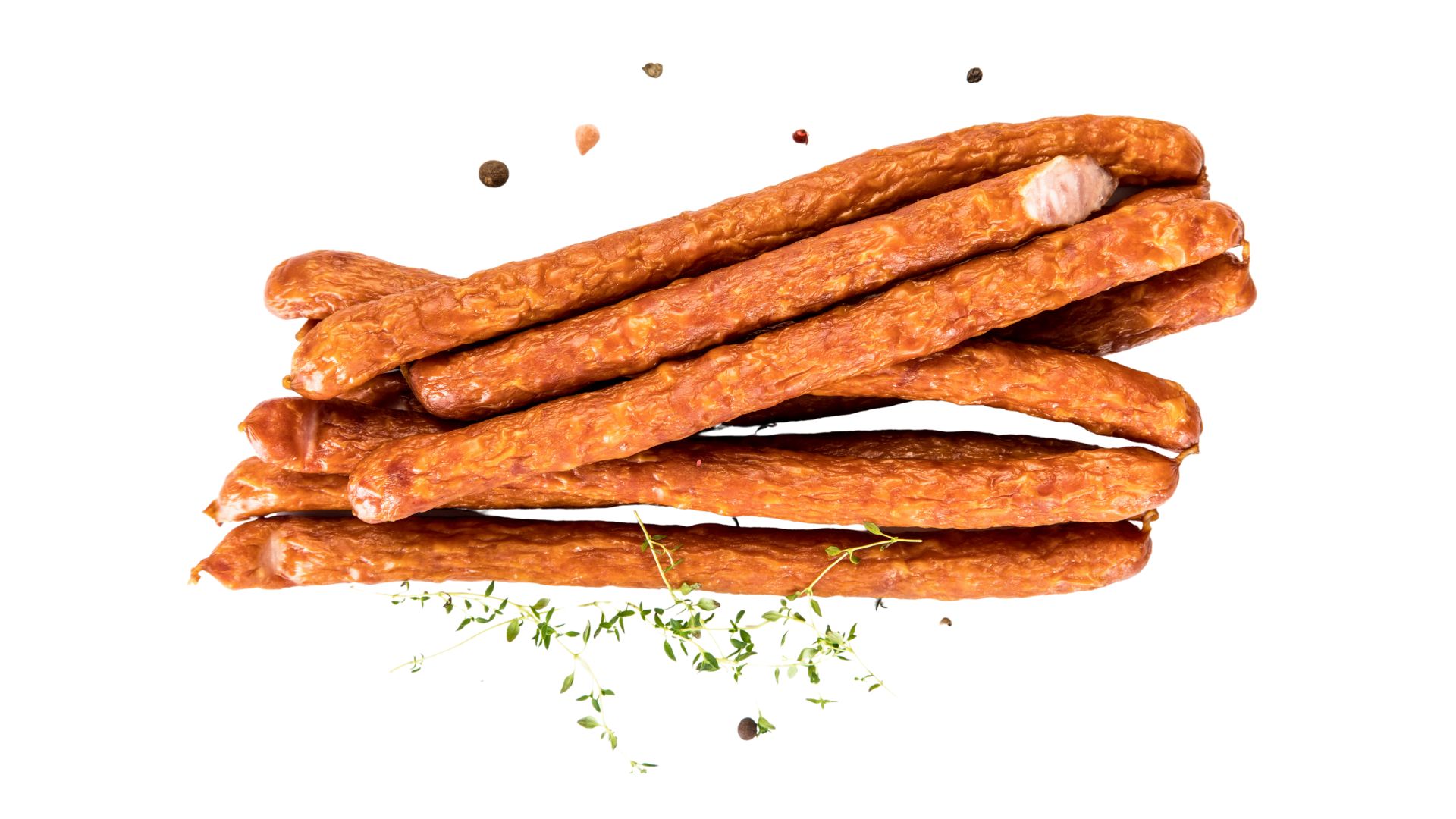 Krótkie cienkie kiełbaski wieprzowe, wędzone surowe w jelicie naturalnym – baranim. Charakterystyczny profil smakowo – zapachowy. Idealne na ciepło jak i zimna przekąska. Produkt pakowany w technologii MAP.