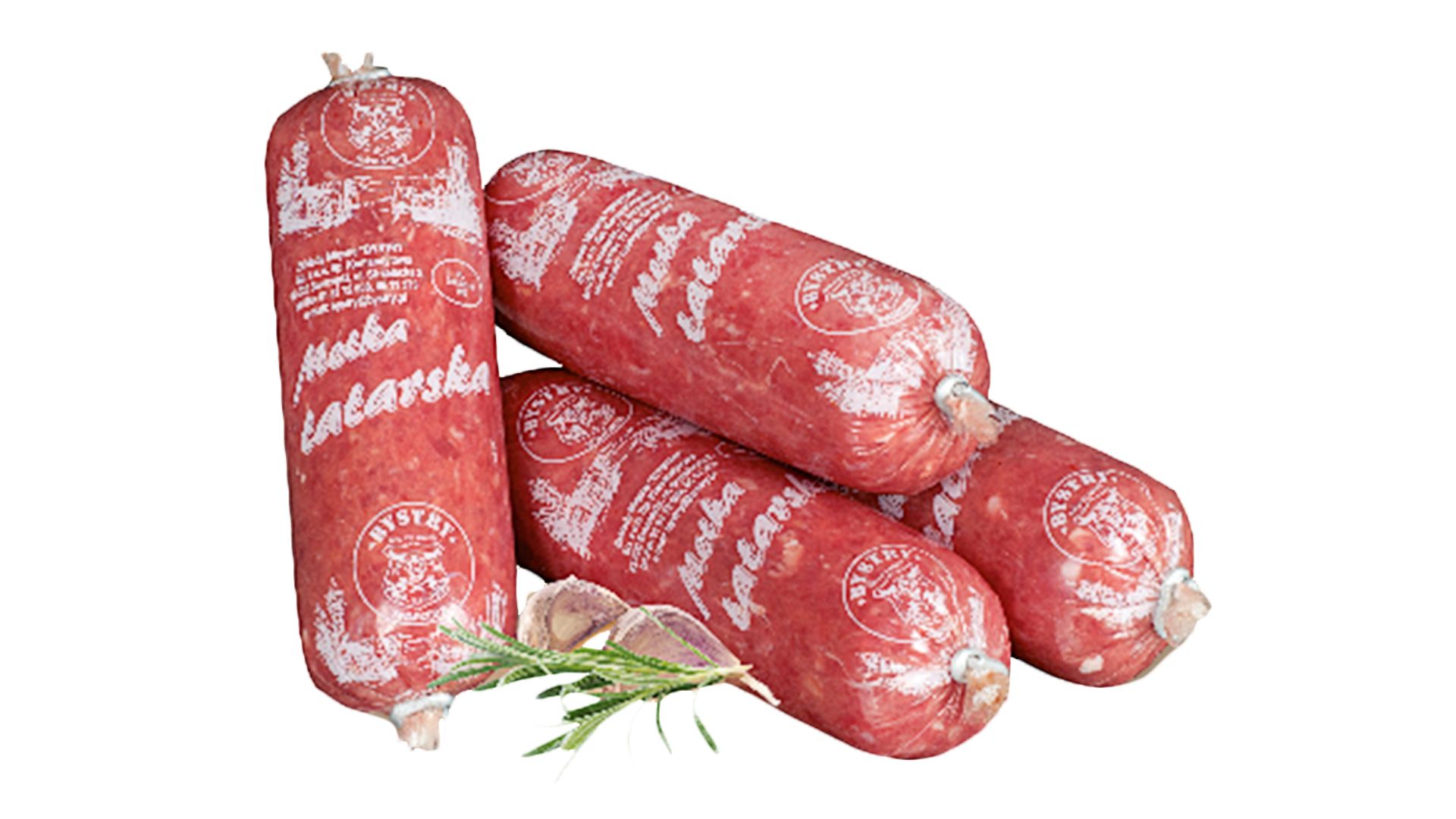 Soczysta kiełbasa wieprzowa, wędzona surowa w jelicie naturalnym – wieprzowym. Charakterystyczny smak czosnku i majeranku oraz aromat dymu wędzarniczego. Produkt pakowany w technologii MAP.