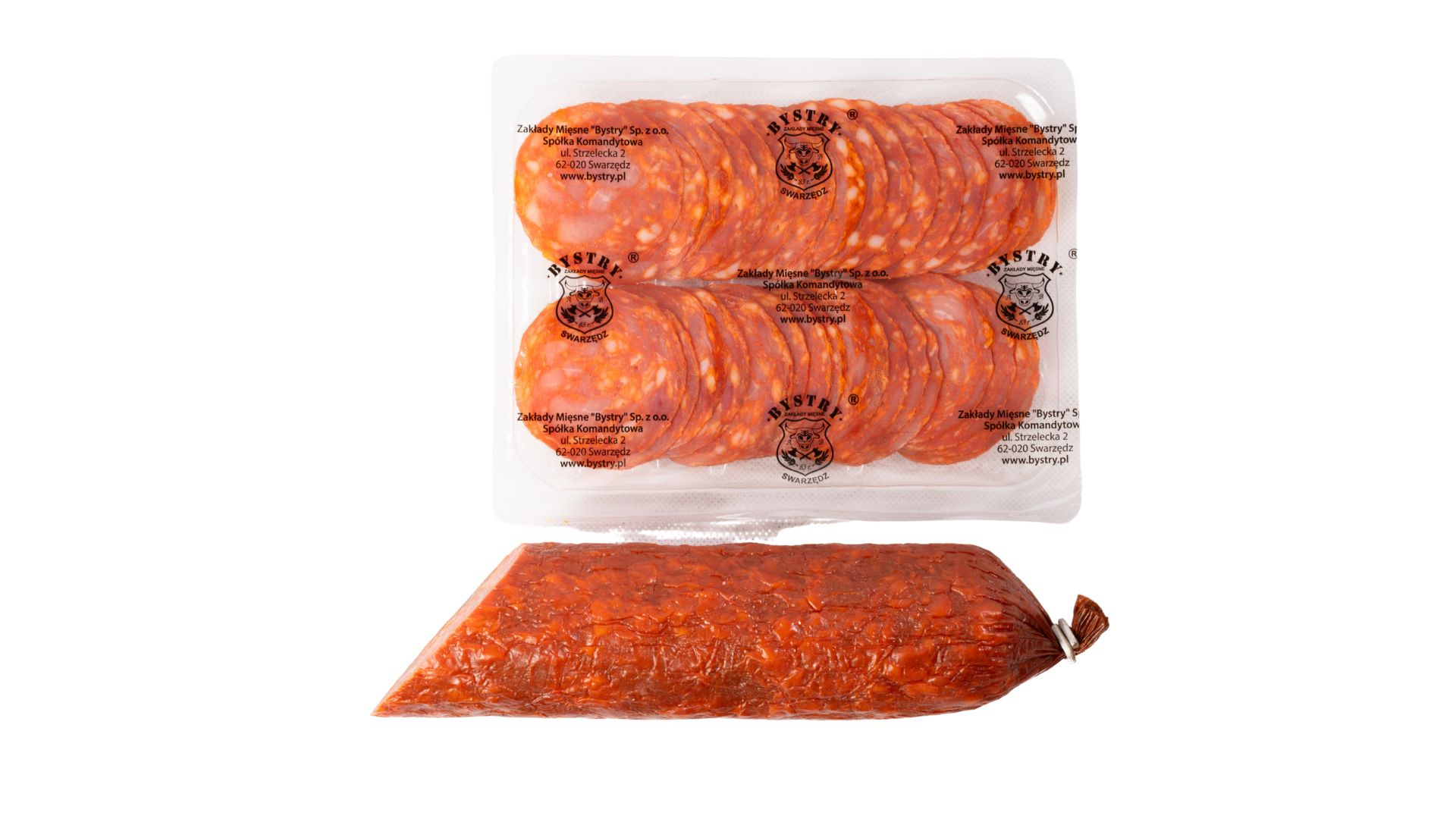 Pikantna kiełbasa wieprzowa, podsuszana, nadziewana w osłonki naturalne. Nie zawiera alergenów. Barwa ciemna. Produkt pakowany w technologii VAC.