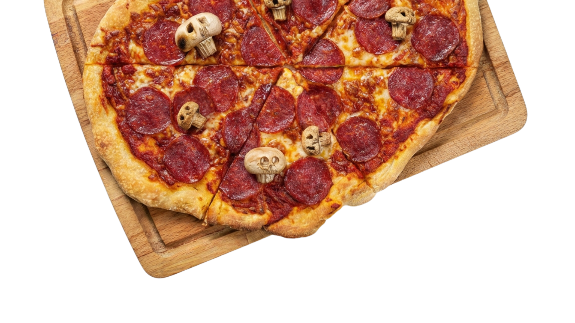 Pizza z czosnkowym salami od Bystrego i pieczarkami-czaszkami