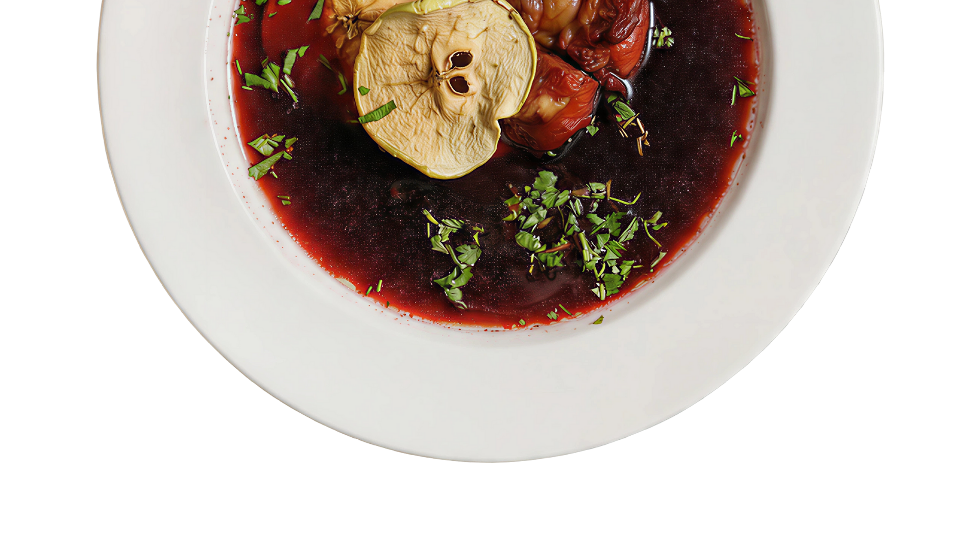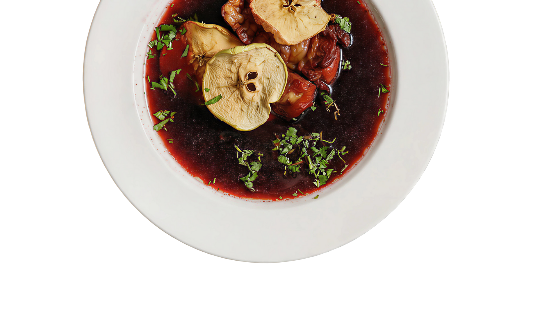 Staropolski barszcz z kiszonych buraków z suszonymi jabłkami i wędzoną śliwką na żeberkach